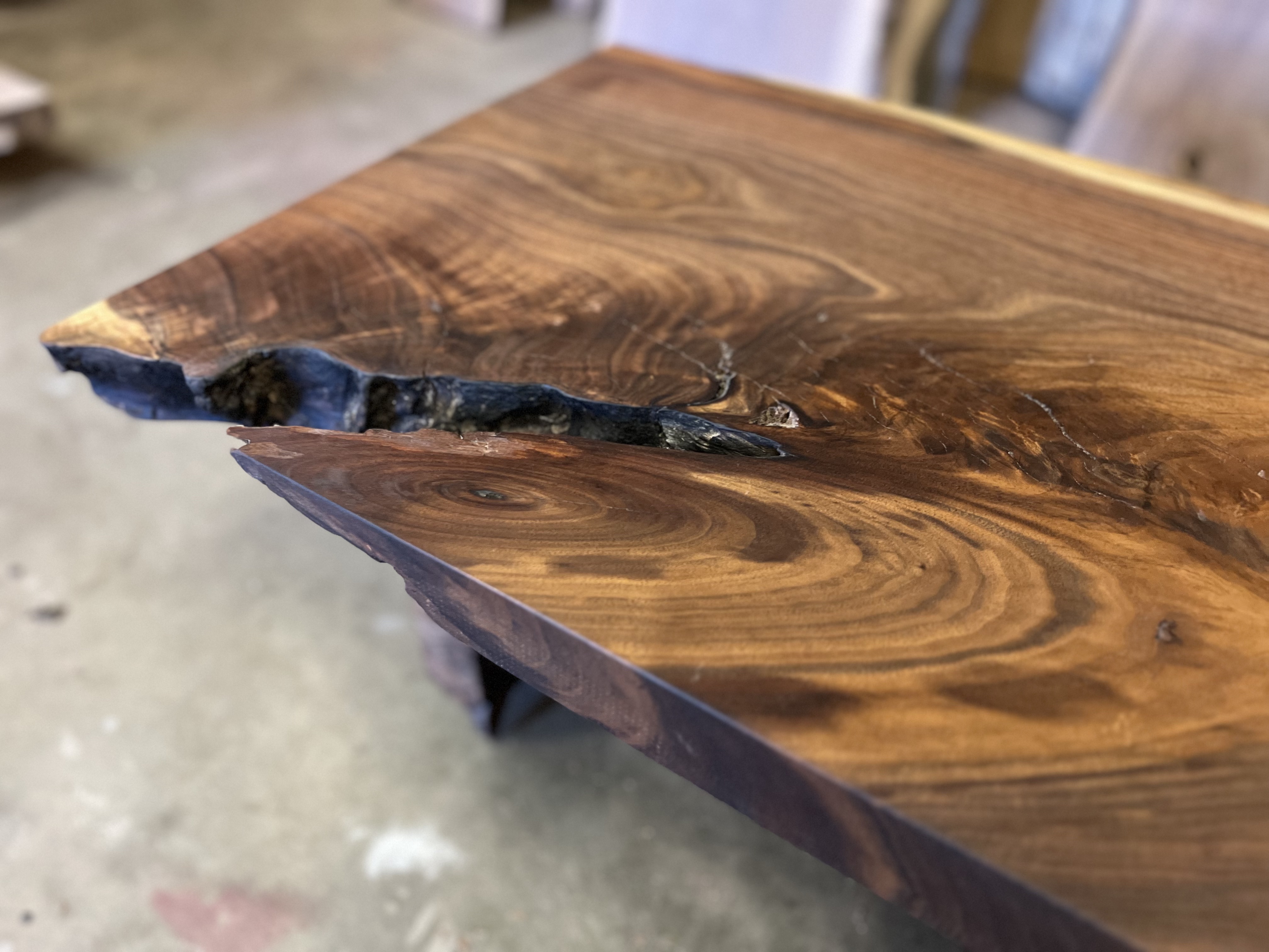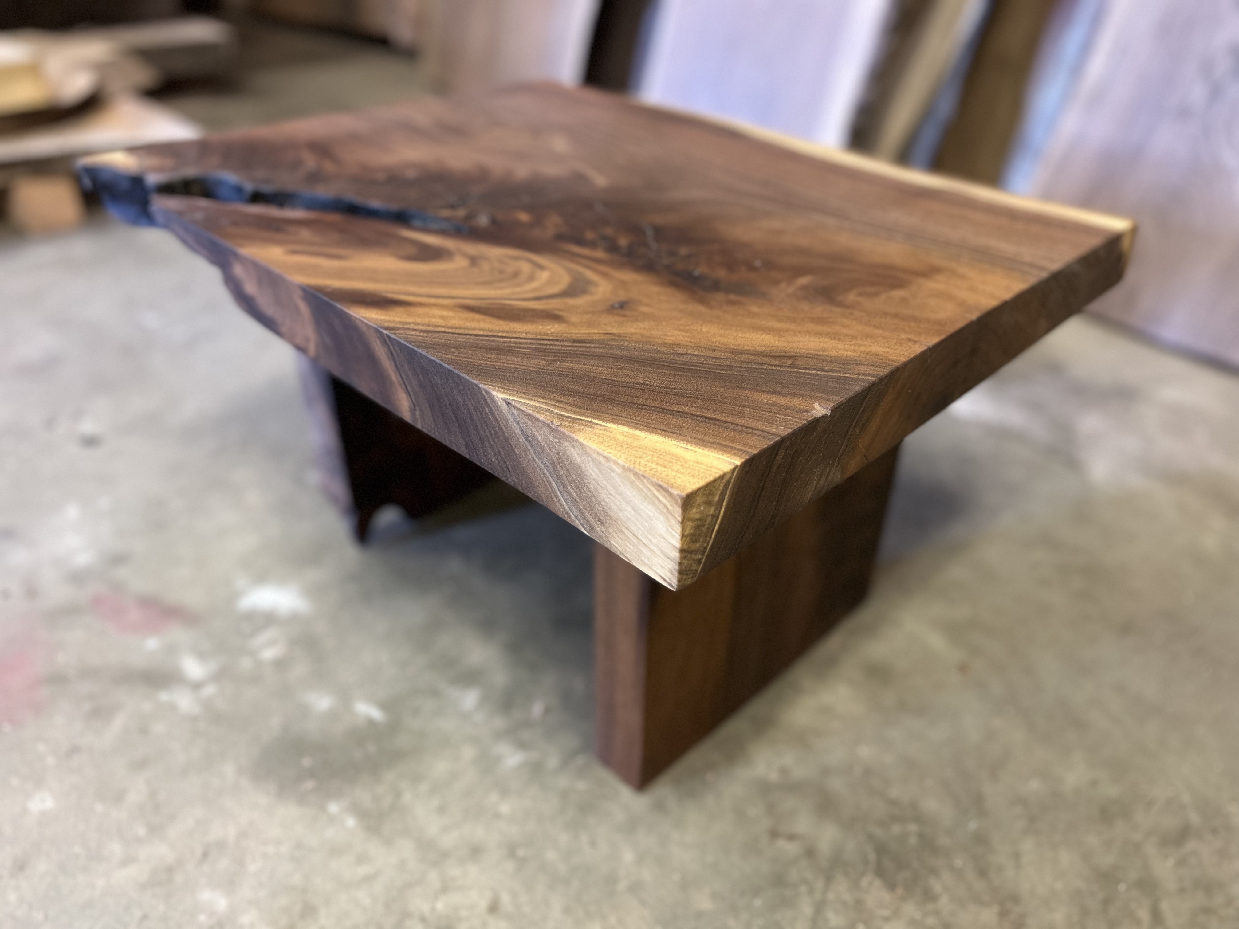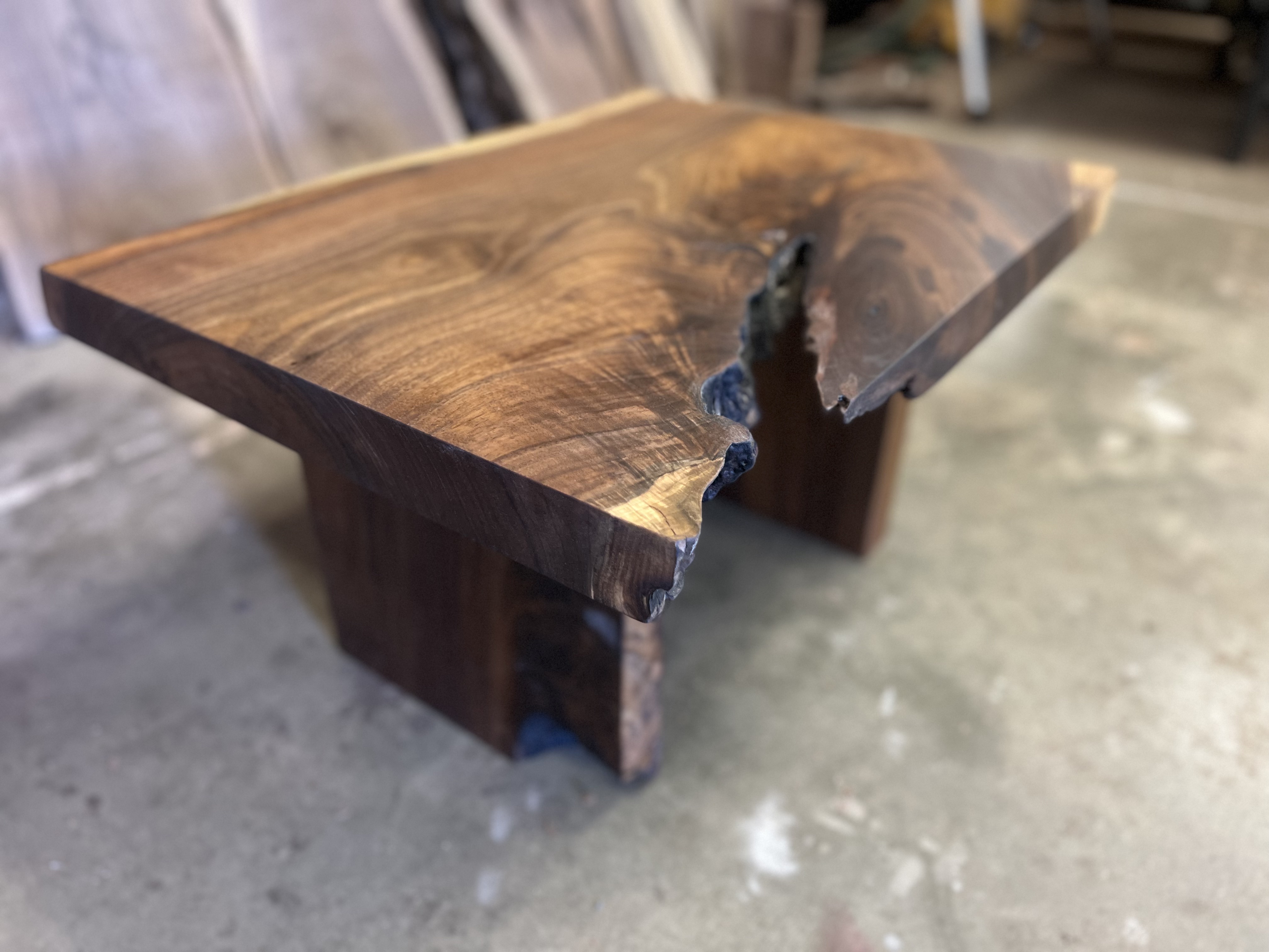 Black walnut accent table. Balanced mix of clean edges and natural features. Protective natural oil finish